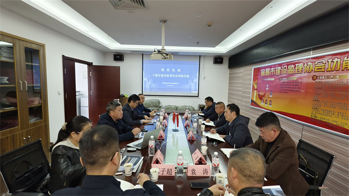 10月22日下午,十堰市建设监理协会会长汪恕林、副会长程时田、叶军、金义松、秘书长袁涛、理事郭子超、秘书晏岚一行七人来我会开展交流调研活动。分会会长盛斌、常务副会长姜江,副会长黄连仲参加了座谈会,并对来访人员到来表示热烈欢迎。